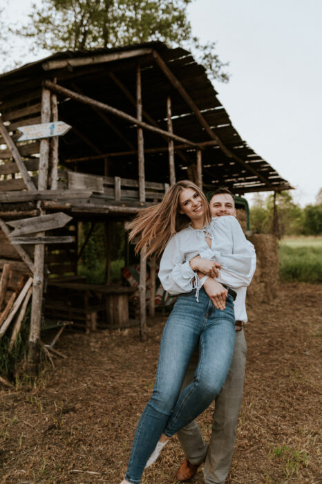 Sesja narzeczeńska w agroturystyce u Jasia i Małgosi – totalne zaskoczenie i piękny zachód słońca