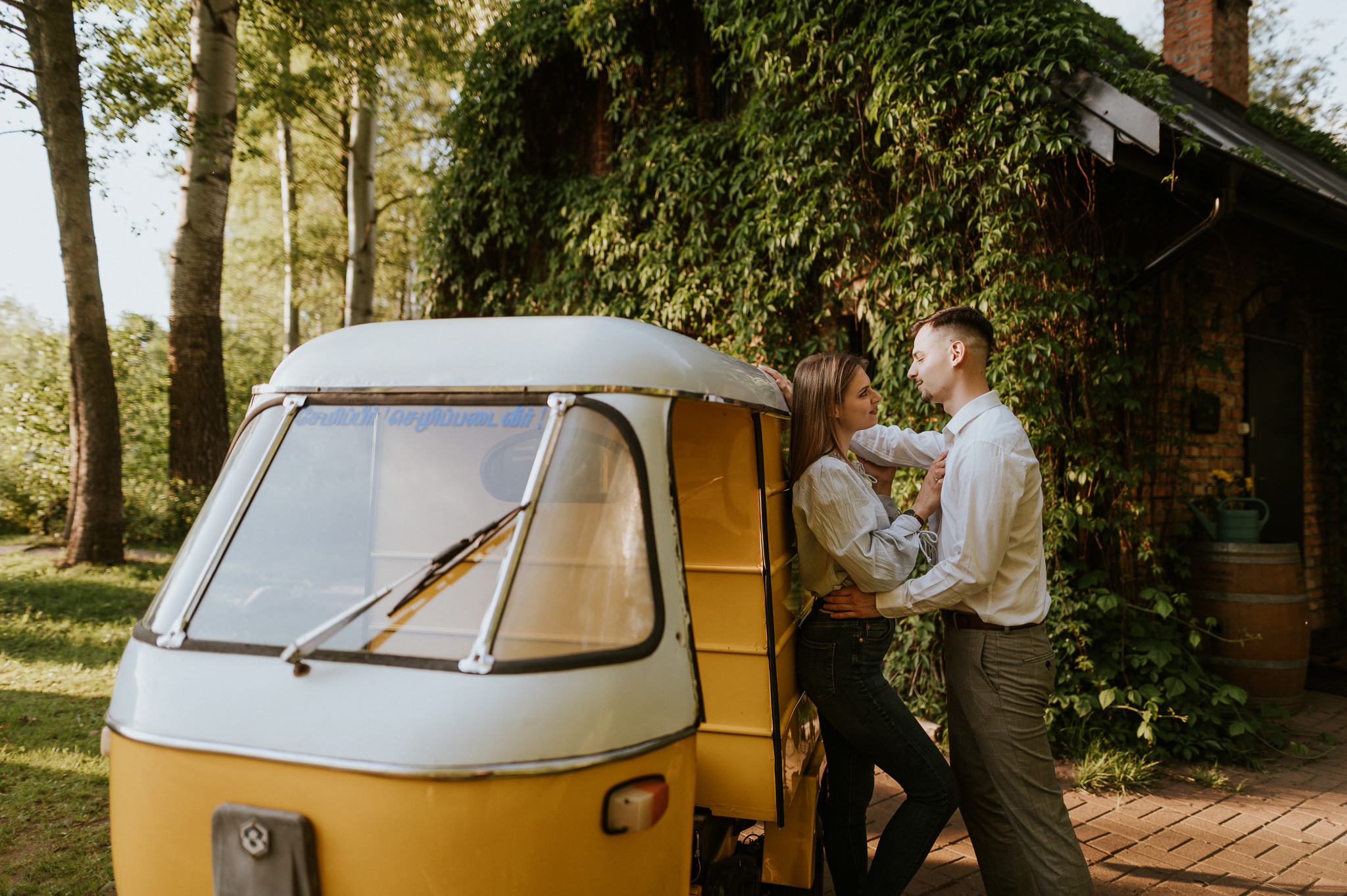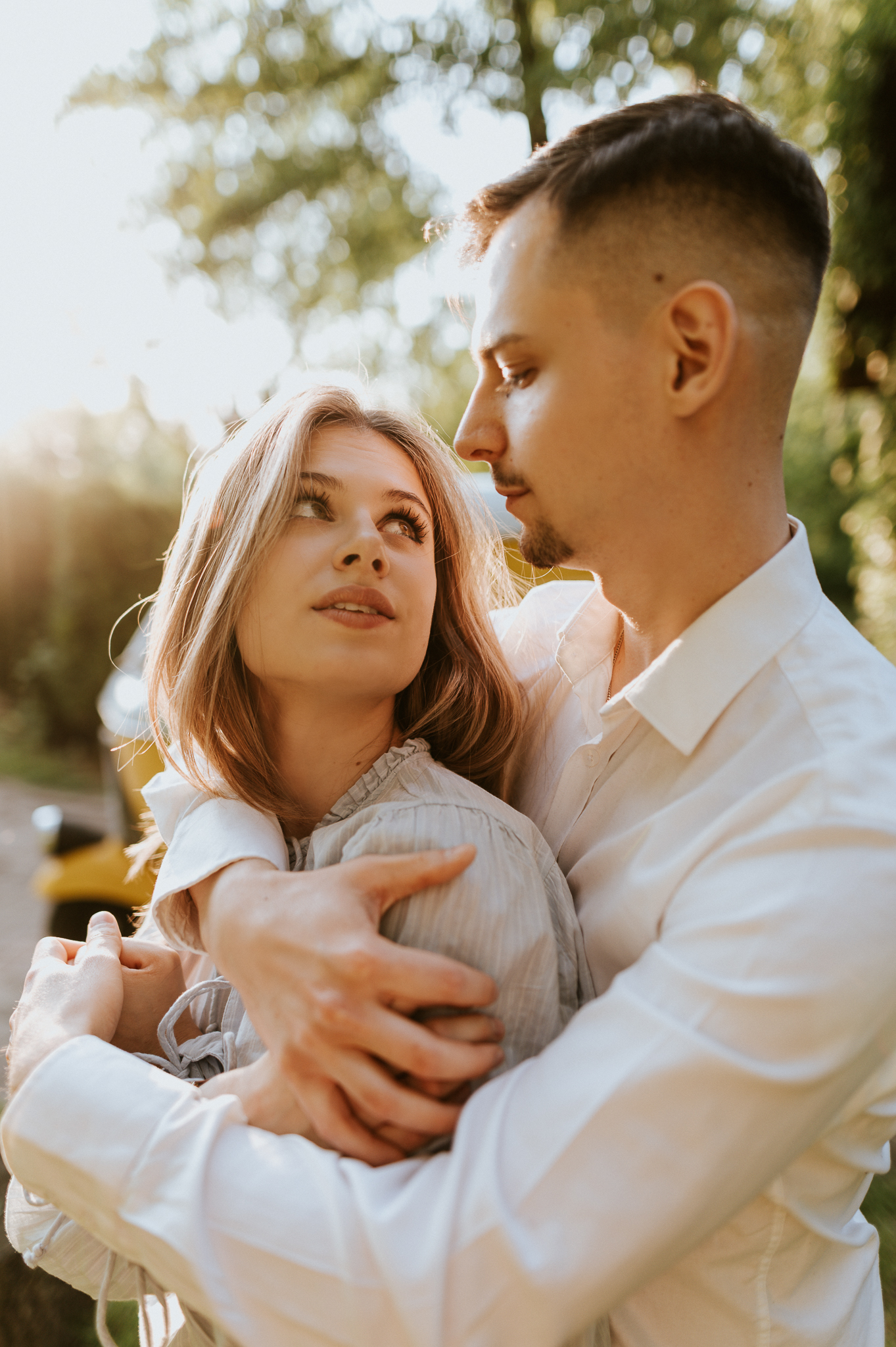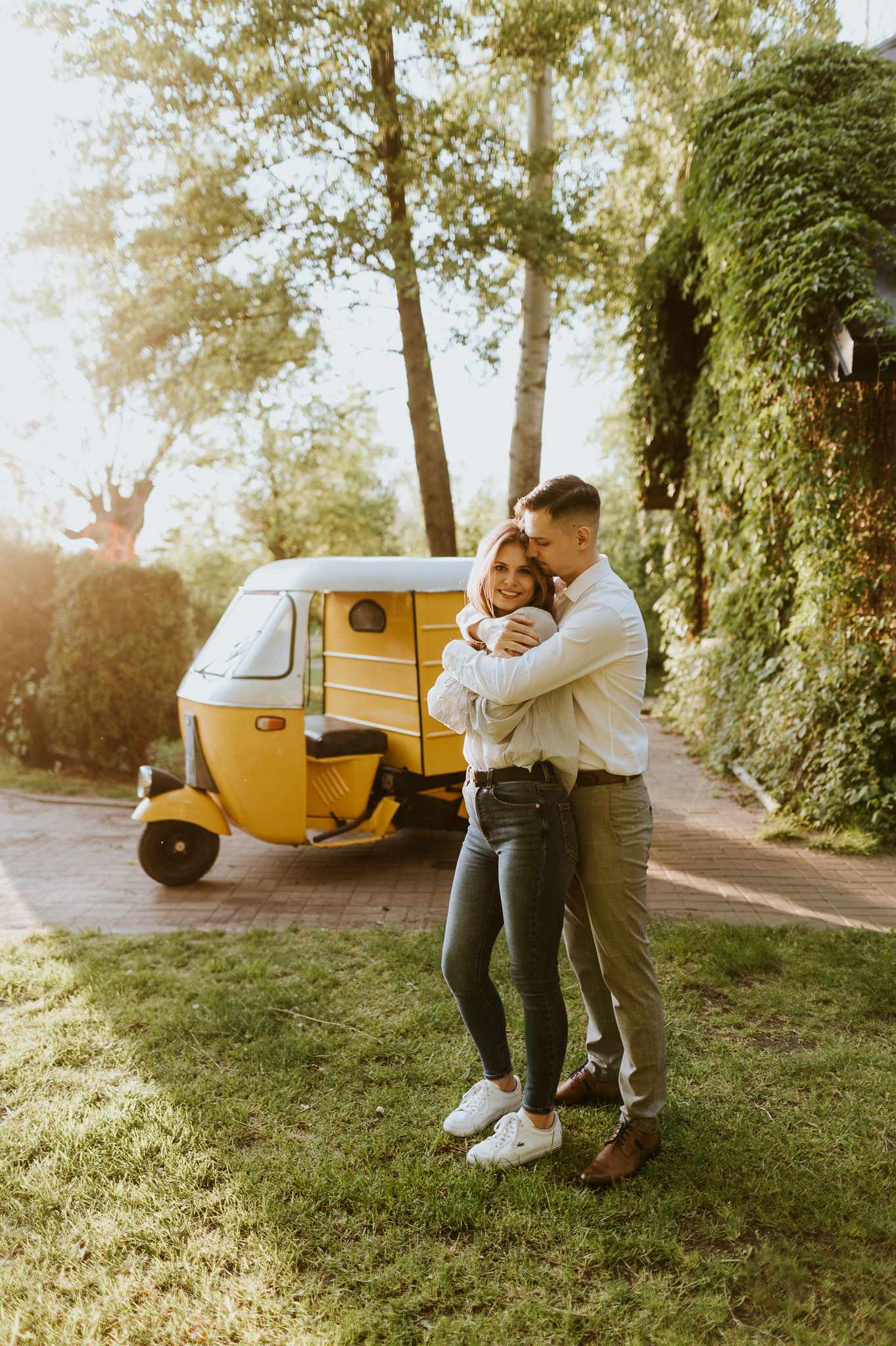 Potem złapaliśmy się na zachód słońca przy żółtym tuk tuku (serio, czy to nie brzmi jak marzenie fotografa?). Światło grało idealnie, narzeczeni byli już totalnie wyluzowani, a zdjęcia z tego momentu mają w sobie coś z filmu drogi.